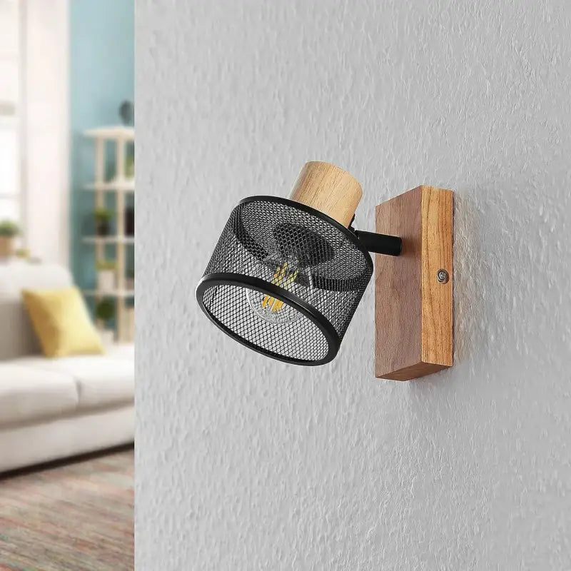 Whether your décor is industrial, Scandinavian, urban loft, or contemporary, this modern metal and wood wire mesh wall light blends in elegantly. The matte black or gray metal echoes urban structures, exposed brick, or black accessories in a space, while the wood ties in with warm tones, soft textiles, and natural materials.