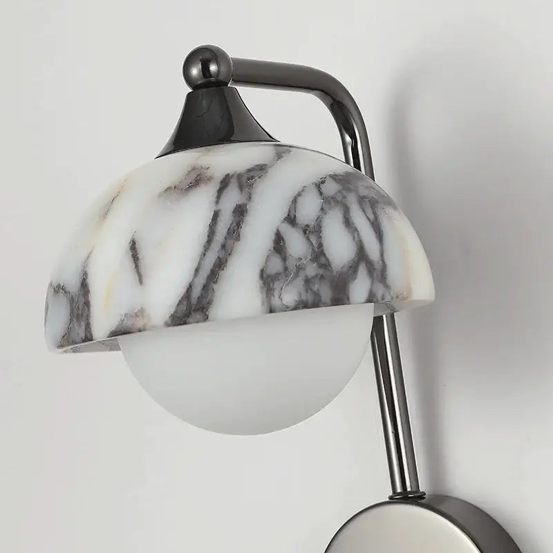 Wall light with marble shade and opaline globe creates an elegant and soft ambiance, perfect for enhancing your interior.