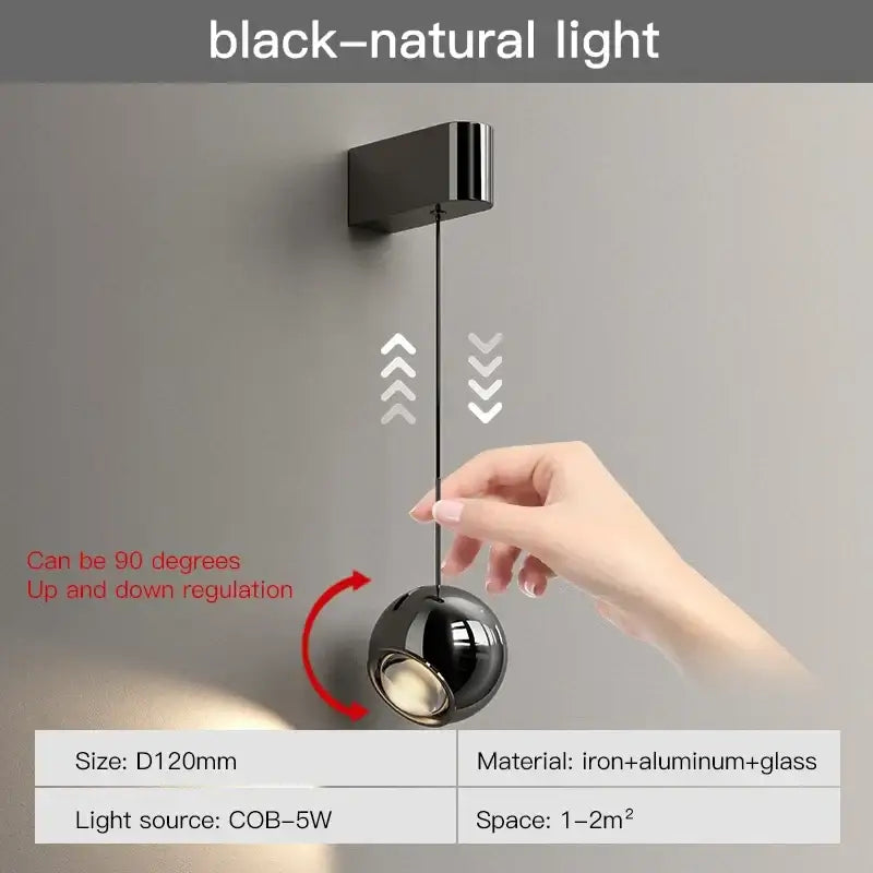 One of the great advantages of the modern-style adjustable black metal ball wall light lies in its decorative versatility. Its simple and elegant design allows it to blend into a wide variety of interiors.