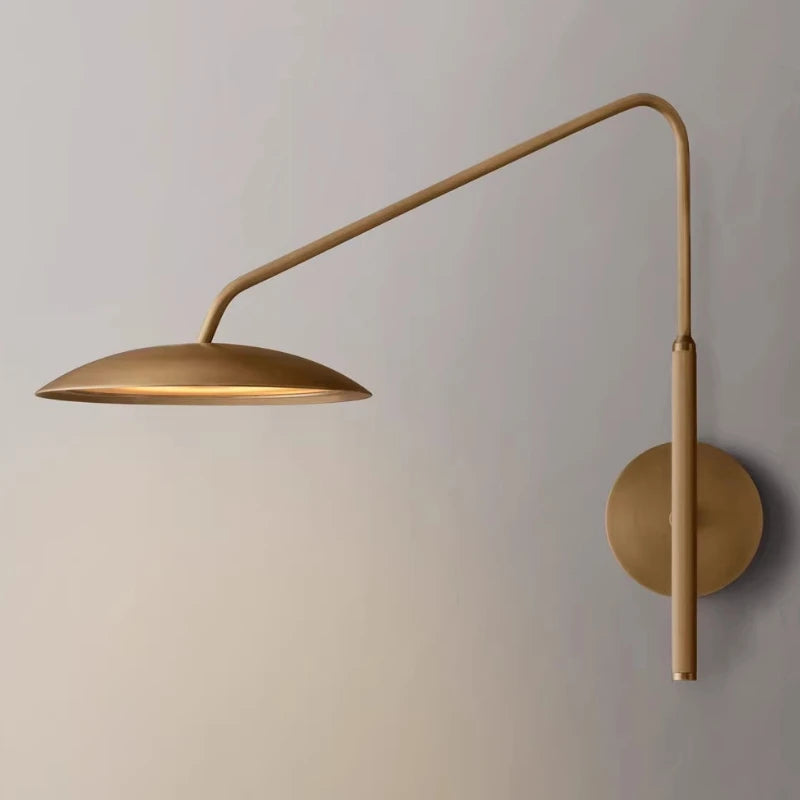 Applique murale design en laiton à bras élancé idéale pour sublimer un intérieur avec une lumière élégante, chaleureuse et un style raffiné et intemporel.