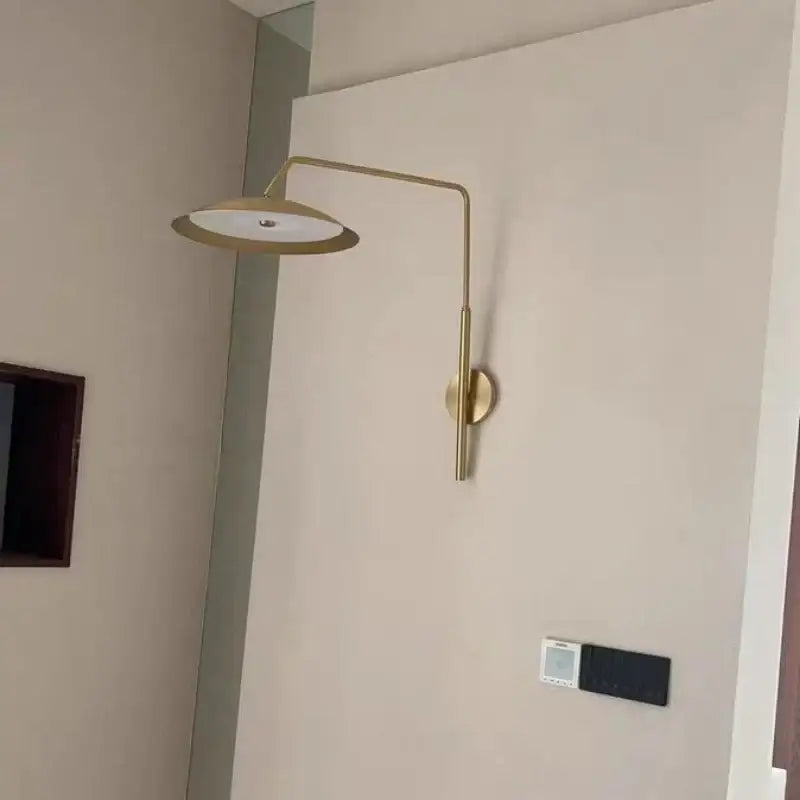 This designer brass wall light with its slender arm stands out as a true decorative element. It's not merely functional; it interacts with the materials, shapes, and colors of the room. In a living room, it can complement a sofa or highlight a painting. In a bedroom, it becomes an elegant detail, a welcome alternative to a traditional lamp. Its clean design allows it to blend seamlessly into a variety of styles, from contemporary minimalism to warmer, more sophisticated atmospheres. It adds a touch of personality without ever overpowering the overall look, making it a sure choice for those seeking a balanced and harmonious décor.