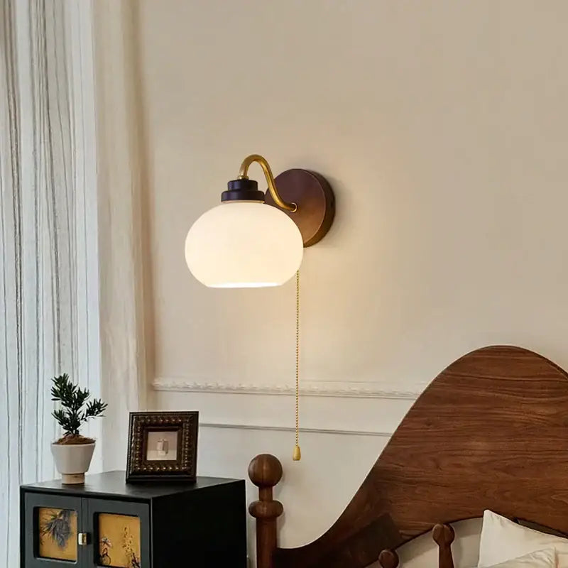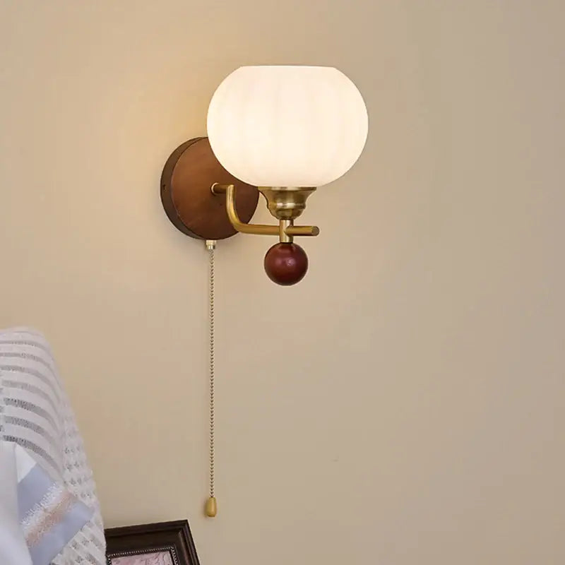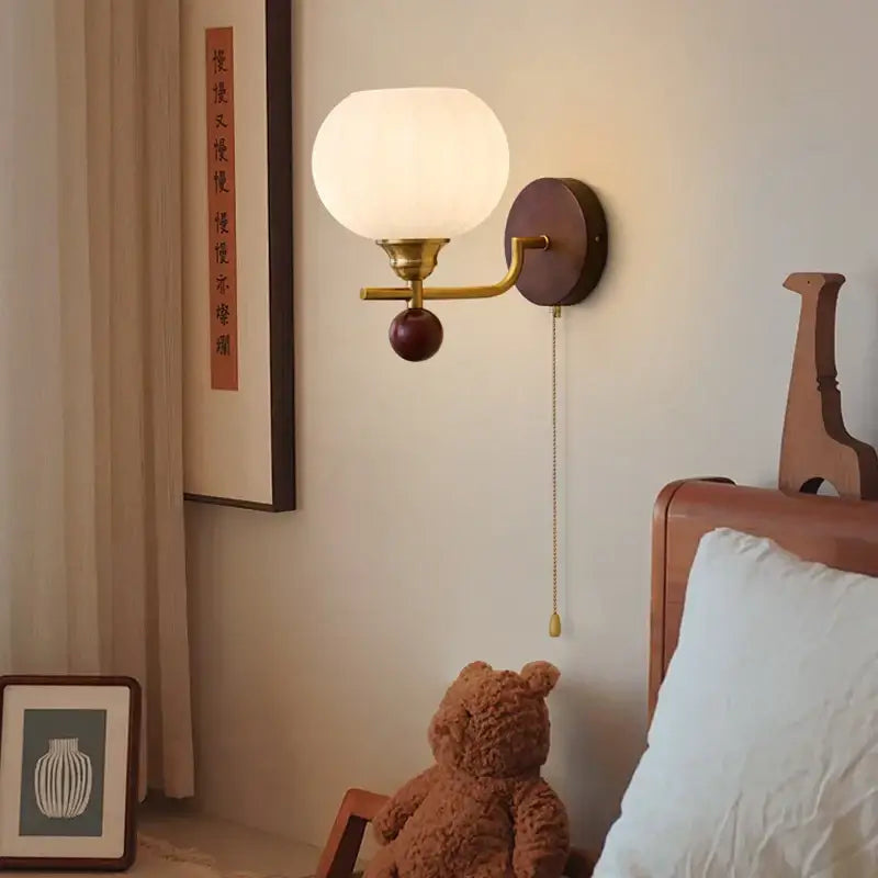 Retro Design Wall Sconce in Wood, Brass, and Opal Glass