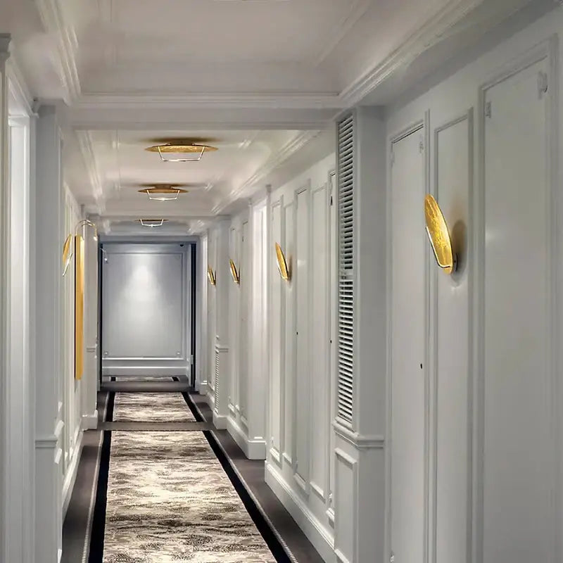 Beyond its decorative function, the round gold wall sconce offers a truly sensory experience. The light diffuses gently, creating subtle contrasts between shadows and golden reflections. This setting transforms each room into a vibrant space, changing with the hours and moods.