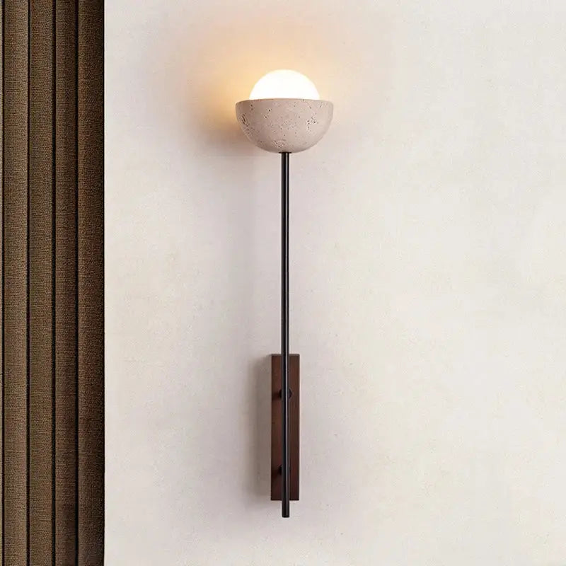 Slender wall light with a light stone half-sphere evokes subtle elegance and soft light, ideal for a soothing and refined atmosphere.