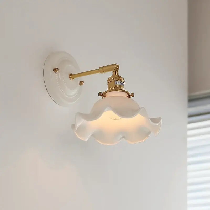 L'applique murale en céramique avec abat-jour en forme de fleur apporte élégance, douceur et lumière tamisée, idéale pour tout type de décoration intérieure.