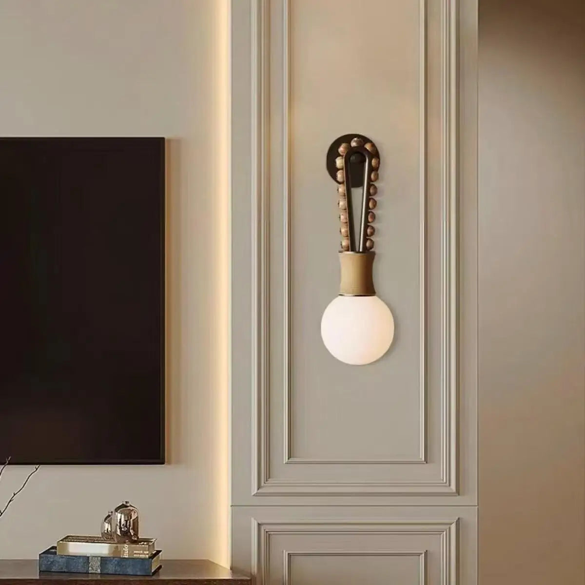 Choisir une applique murale en laiton avec globe en verre blanc, c’est aussi faire le choix d’un éclairage qui participe à l’organisation visuelle de la pièce. installée sur un mur, elle attire naturellement le regard et crée des points de repère élégants dans l’espace. elle peut souligner une perspective, mettre en valeur un pan de mur ou accompagner un élément de mobilier sans jamais le dominer. grâce à son design équilibré, elle s’intègre harmonieusement dans l’architecture intérieure et contribue à une lecture plus fluide des volumes, tout en renforçant la cohérence décorative de l’ensemble.