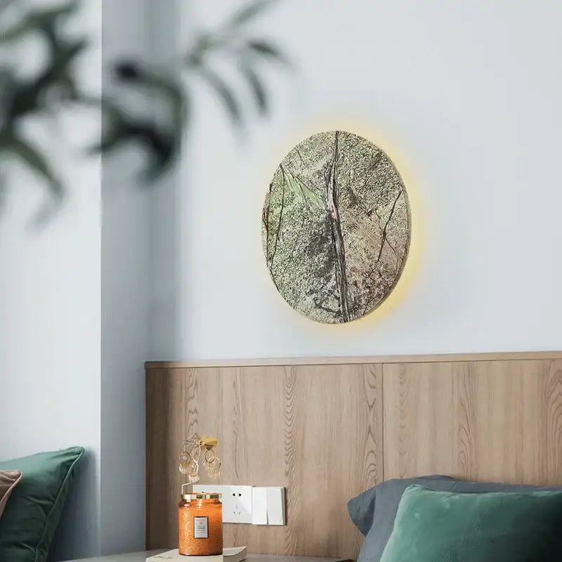 Installing a sculptural wall sconce made of green natural stone is a stylish focal point for an empty wall. It draws attention without overwhelming the space, creating a subtle visual balance. Placed in an entryway, hallway, or living room, it acts as a decorative transition element between rooms while adding character.