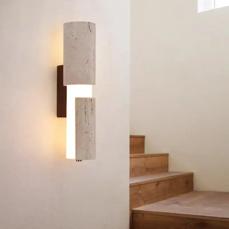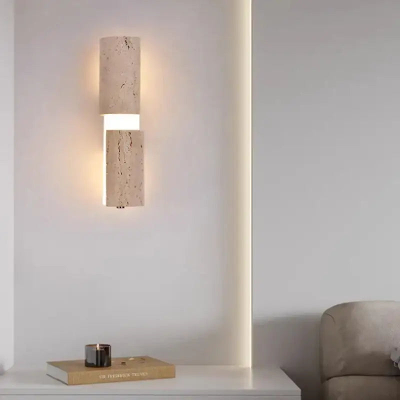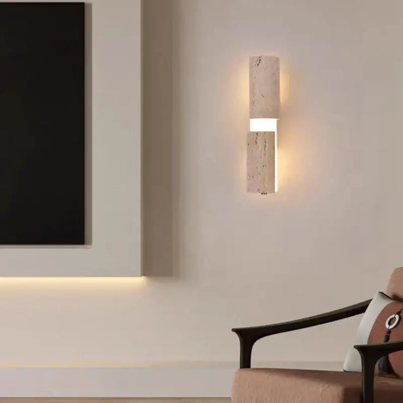 The modern travertine up and down lighting wall sconce blends easily into a high-end decor. Its understated yet refined presence draws the eye without being overpowering.