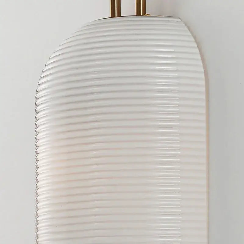 This elegant glass and metal wall light for a chic living room plays with textures and light to offer a unique look, while highlighting the architectural lines of your walls.