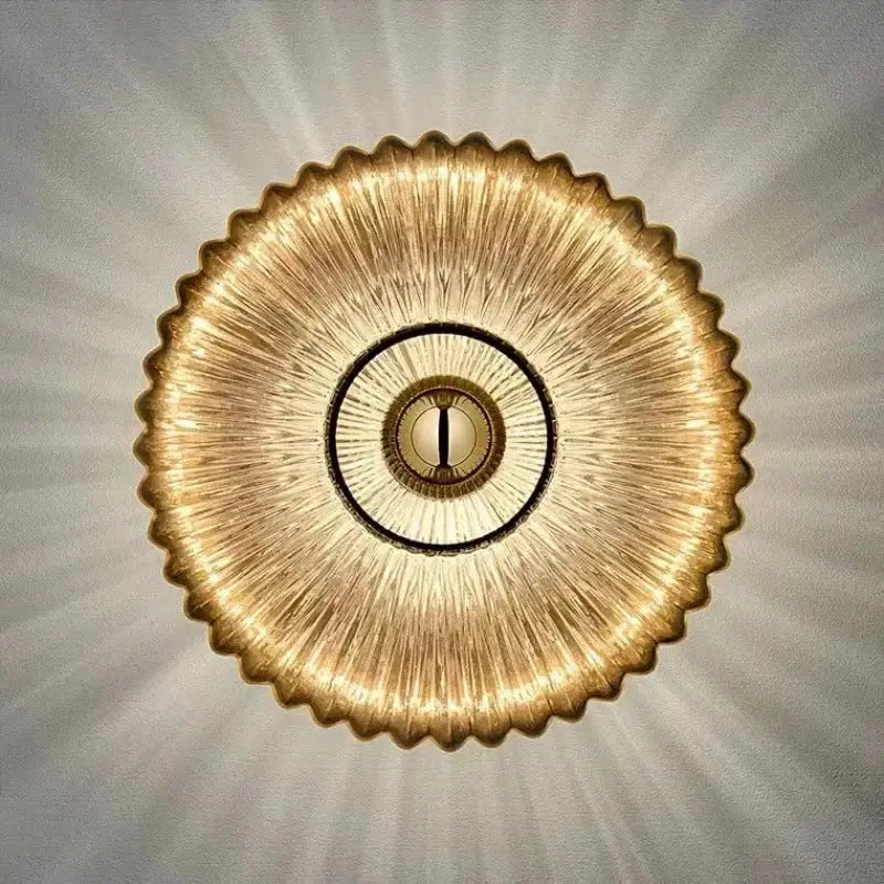 Circular glass wall light with a vintage and retro style, it elegantly illuminates any interior, bringing a nostalgic and warm touch.