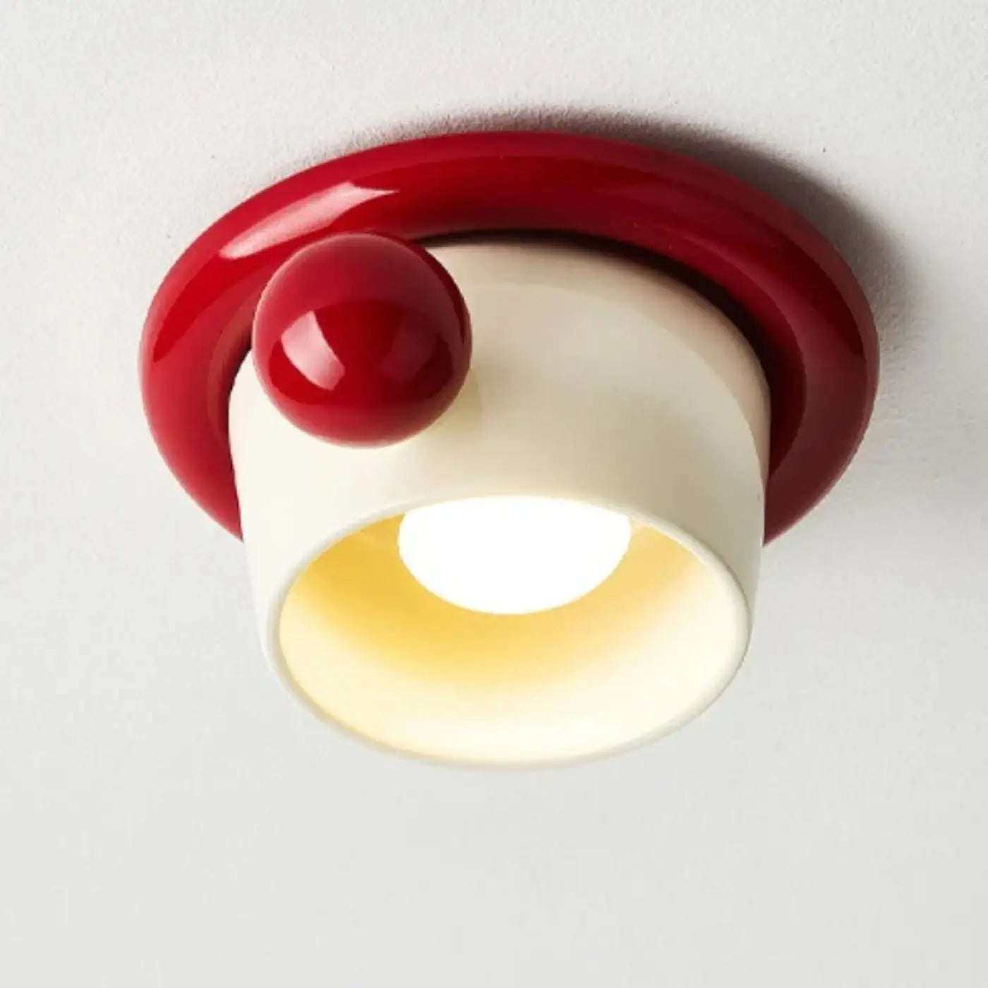 This retro ceiling light does not merely reproduce past codes; it boldly reinterprets them. The shapes evoke an era when design was synonymous with character, while the hues bring contemporary freshness. Each color seems to have been chosen to dialogue with the space, creating an elegant and vibrant visual harmony.
