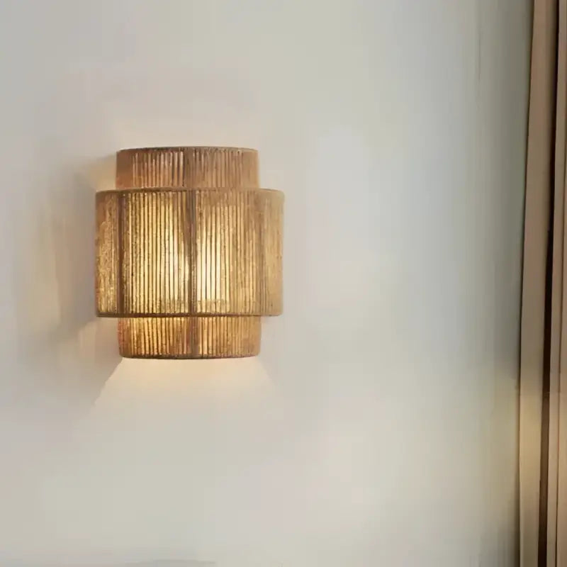 This natural-style rattan wall light is a handcrafted light made from woven fibers, diffusing a soft light for a warm and authentic ambiance.