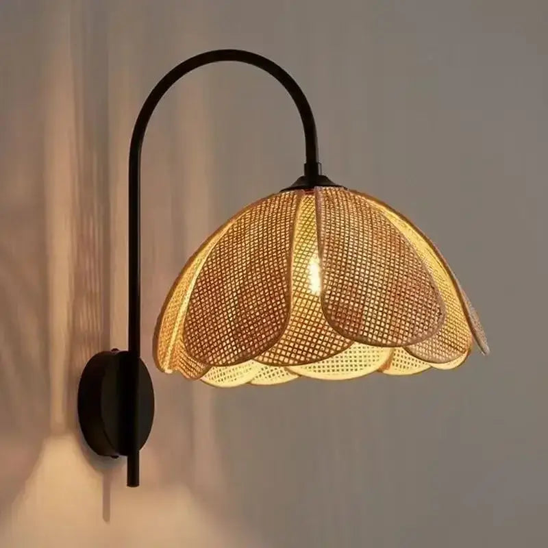 Bring a natural and poetic touch to your interior with a rattan wall light in the shape of a flower with several petals, ideal for creating a warm and elegant atmosphere.