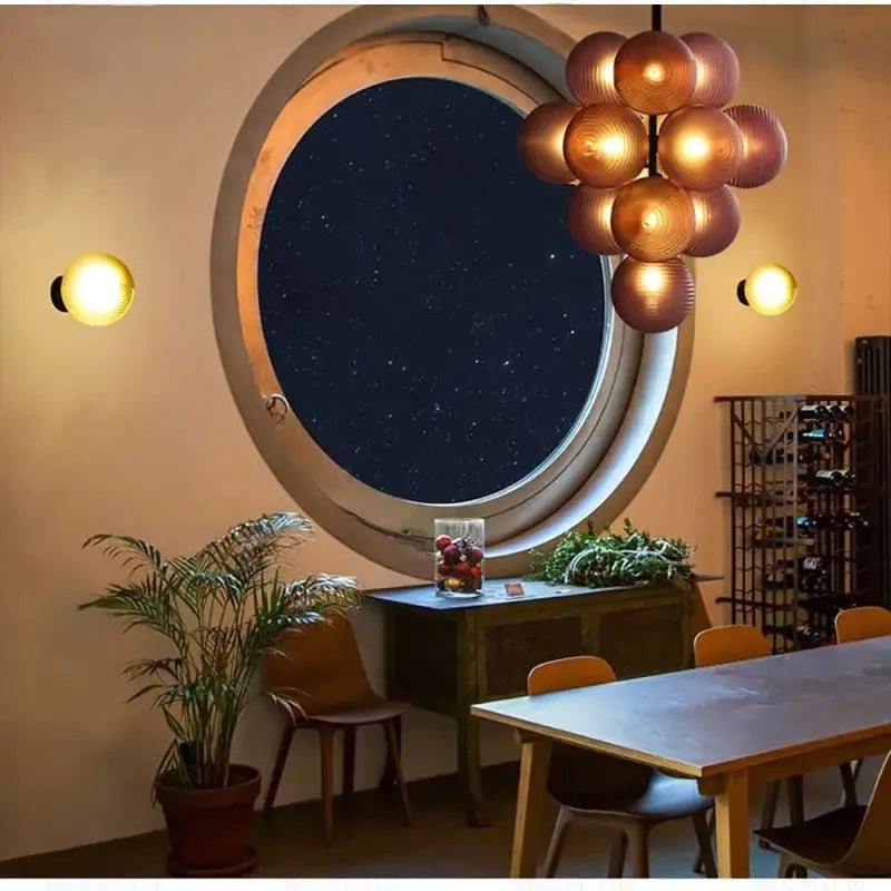 The contemporary pendant light with a cluster of glass balls is a luminous piece that transcends the simple function of lighting to become an essential decorative element in a modern interior.