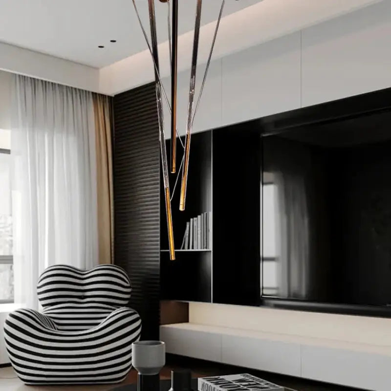 Placing an artistic LED pendant light in the center of a room instantly evokes a refined, warm, and inviting atmosphere. The harmonious presence of the light rods diffuses a soft, dancing light that enriches every corner of the room without ever being harsh.