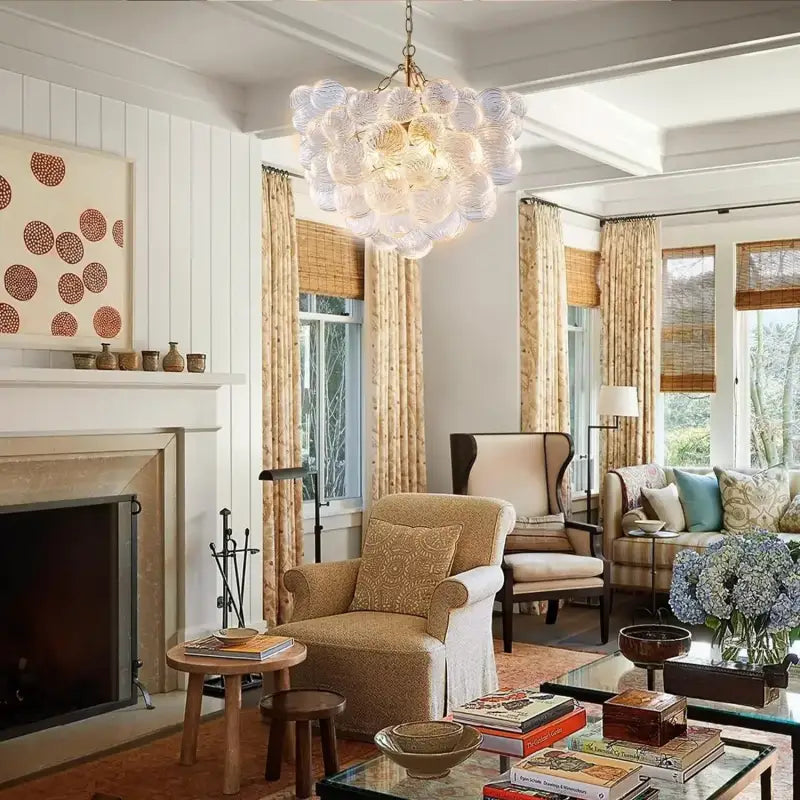 Installing a designer pendant light with glass balls in your living room or dining room instantly enhances the atmosphere. The transparency of the glass plays with reflections and diffuses a soft light that adapts to the time of day.
