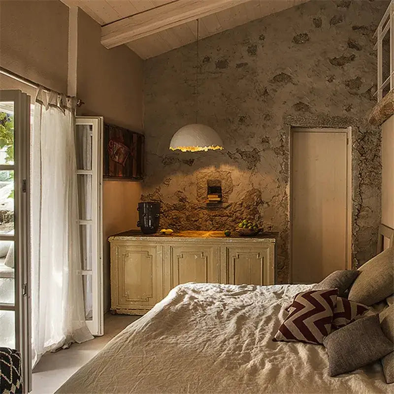 Installing this pendant light invites a sensory ambiance into the room. The visual texture of the cracks is accompanied by a diffused warmth provided by the matte dome. This combination not only affects aesthetics but also emotional sensations: we immediately feel a delicate calm and an invitation to contemplation.