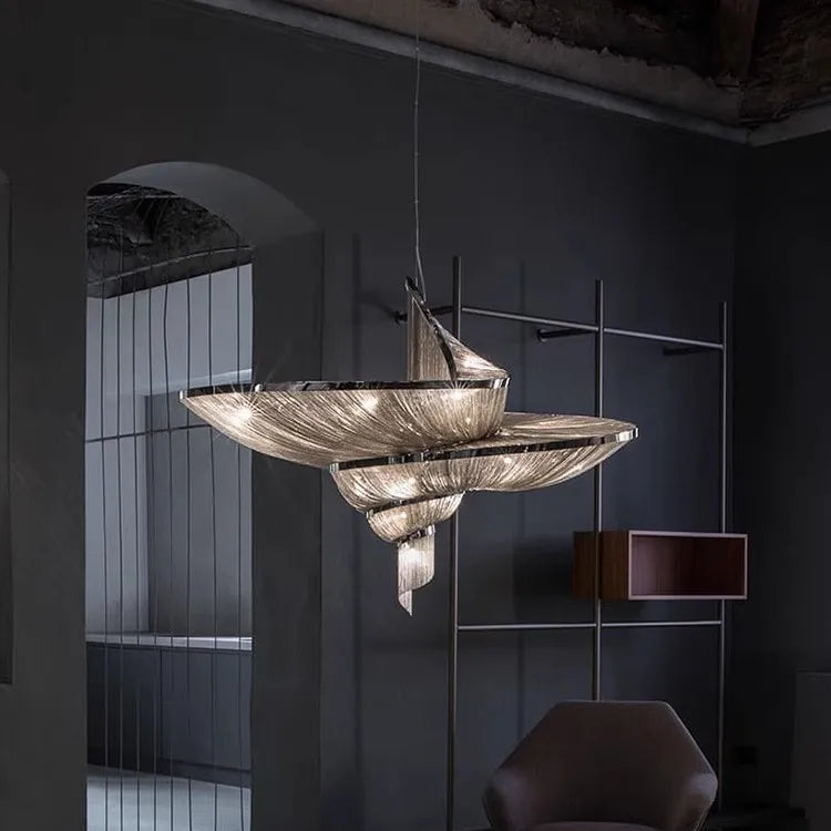 Idéale pour ceux qui recherchent une esthétique raffinée sans compromis sur l’originalité, cette suspension incarne la fusion parfaite entre art, lumière et décoration intérieure haut de gamme.