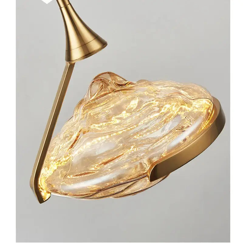 Installing a designer pendant light in textured clear glass and brass allows you to visually structure a space without partitioning it. Placed above a table, it naturally draws the eye and defines a specific area, fostering a sense of togetherness. In a living room, it can serve as a focal point, creating a visual dynamic that guides the furniture arrangement. Its airy design avoids any feeling of clutter, even in smaller rooms. It thus contributes to the overall balance of the decor, bringing an elegant and understated presence.