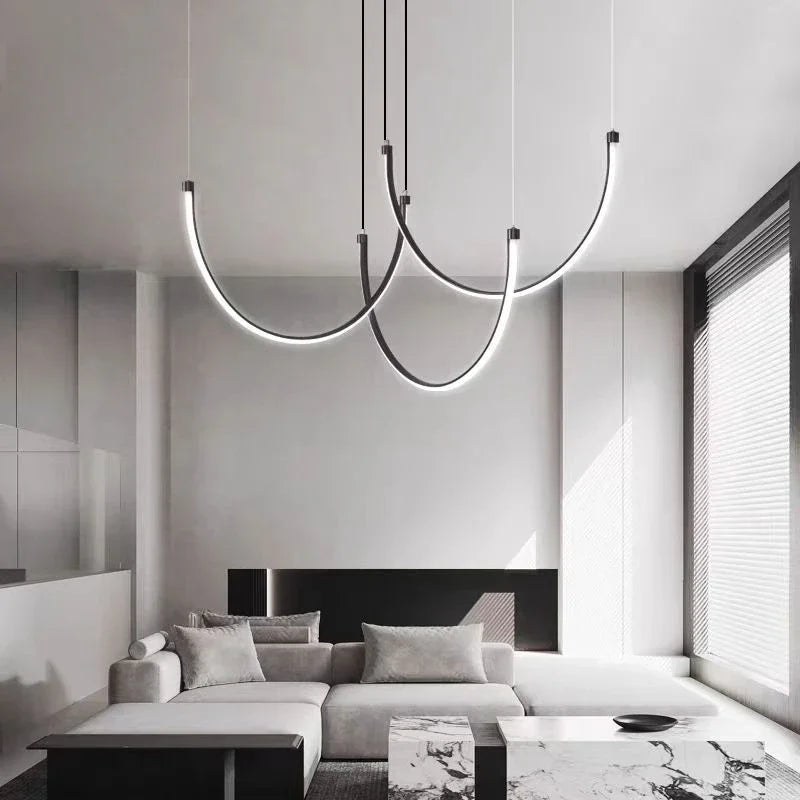 Suspension Design LED Minimaliste À Lignes Fluides sublime votre intérieur avec une lumière douce et un style épuré qui valorise chaque espace.