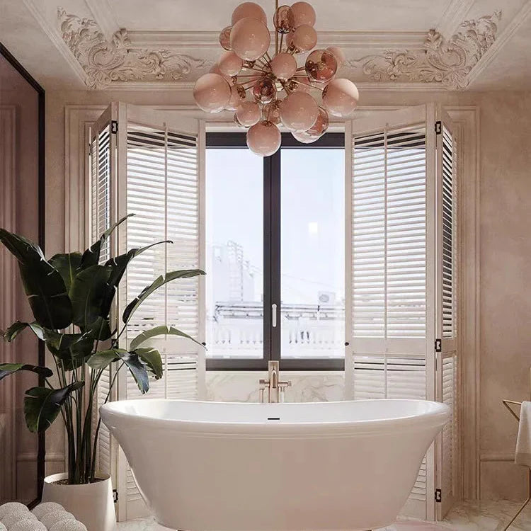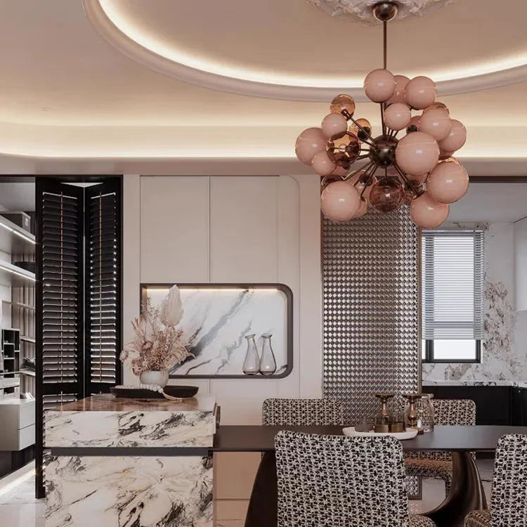 The decorative pink globe pendant light adapts to a wide variety of interiors. In a modern setting, it adds a touch of softness and color. In a warmer interior that blends natural materials and soothing tones, it provides a subtle contrast. It suits a minimalist living room as well as a romantic bedroom, a cozy dining room, or an elegant hallway. Because the shapes and compositions can vary, it naturally harmonizes with existing furniture and décor. The pink becomes an asset for visual balance, capable of transforming an ordinary environment into a welcoming and stylish space.
