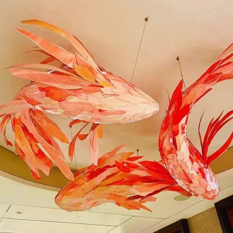 Creative Fish Pendant Light for Living Room: an elegant light fixture that transforms your living room into a unique space, blending soft light and inspired decoration, ideal for creating a warm and poetic atmosphere in your home.