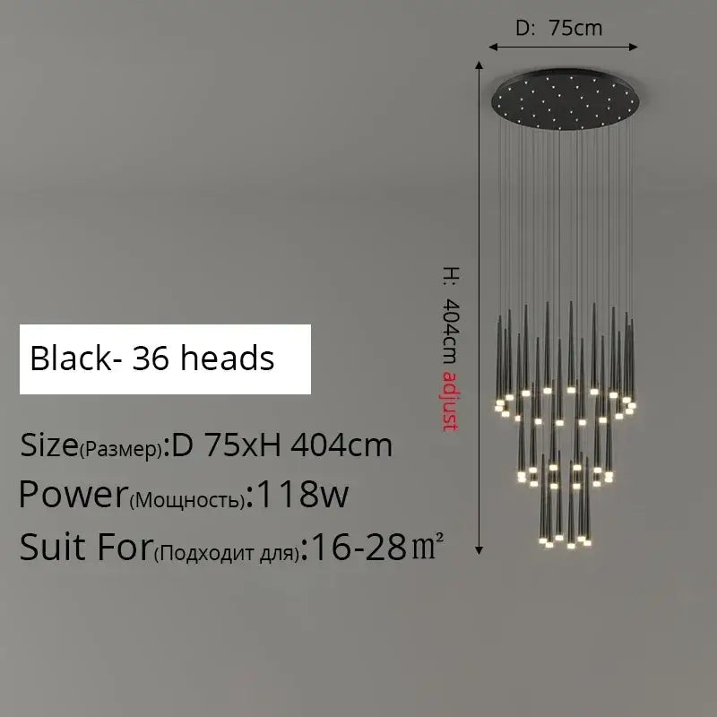 Gold is a timeless color associated with luxury, warmth, and sophistication. Contrary to popular belief, it's not limited to classic or baroque interiors. In a luxury gold pendant light for a staircase, this shade integrates perfectly into modern, minimalist, or even industrial settings. Gold captures light and diffuses it softly, creating an atmosphere that is both luminous and soothing. It brings a warm dimension that contrasts beautifully with light walls, raw concrete, or natural materials like wood. The result is a subtle balance between modernity and refinement.