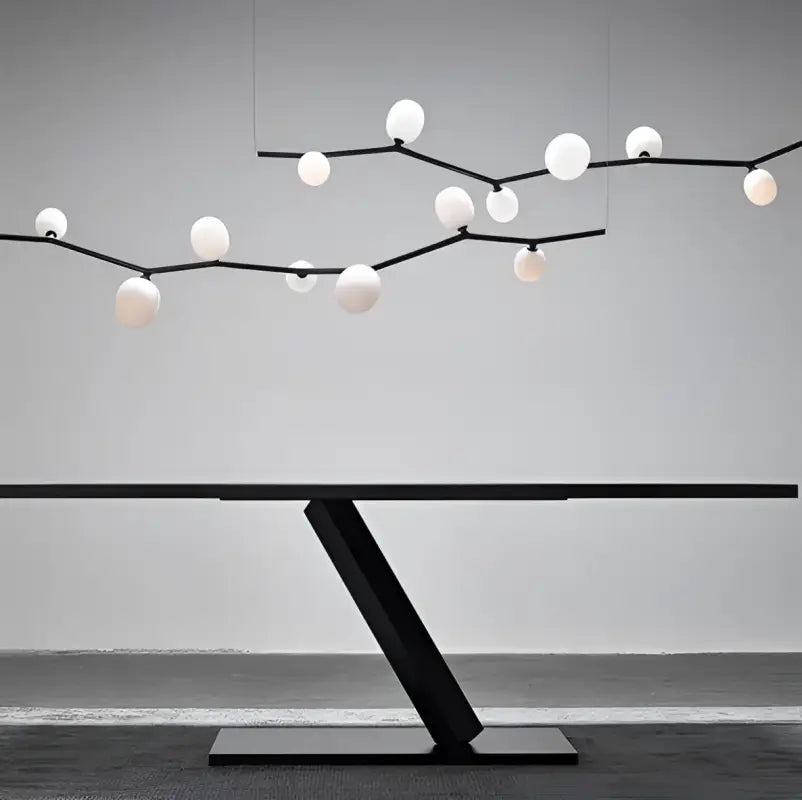 It instantly lends a high-end character to the room, enhancing its proportions and embodying the elegance of a modern style. It fits perfectly into a decorative approach where lighting becomes a true work of art. It enriches a living room, dining room, or reception area by adding a touch of visual dynamism.