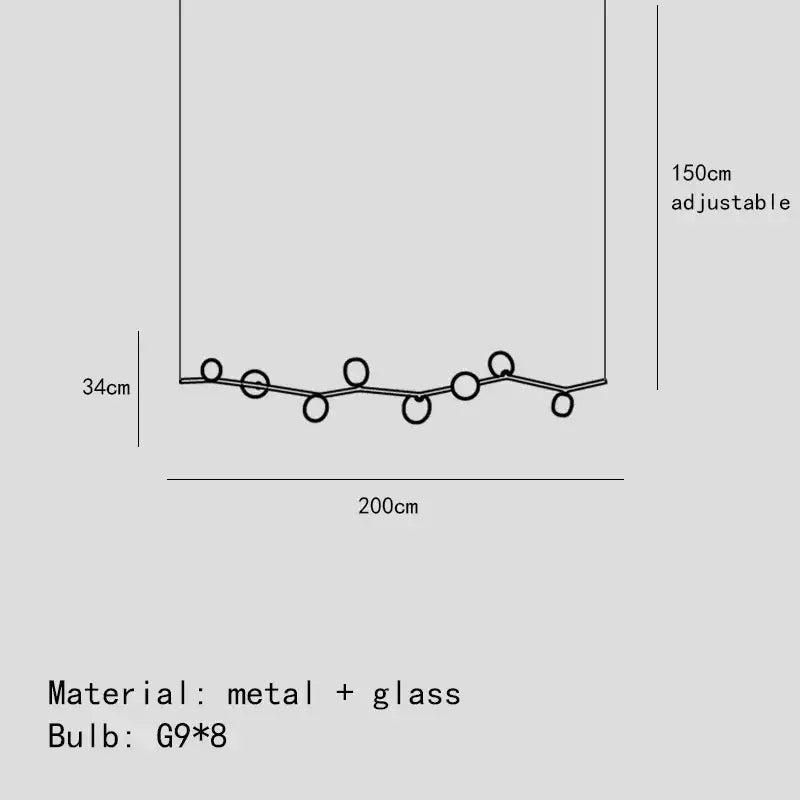 S (Width) 140 cm x (Height) 34 cm (Adjustable cable up to 150 cm) (with 5 lamps) M (Width) 163 cm x (Height) 34 cm (Adjustable cable up to 150 cm) (with 6 lamps) L (Width) 180 cm x (Height) 34 cm (Adjustable cable up to 150 cm) (with 7 lamps) XL (Width) 200 cm x (Height) 34 cm (Adjustable cable up to 150 cm) (with 8 lights) |