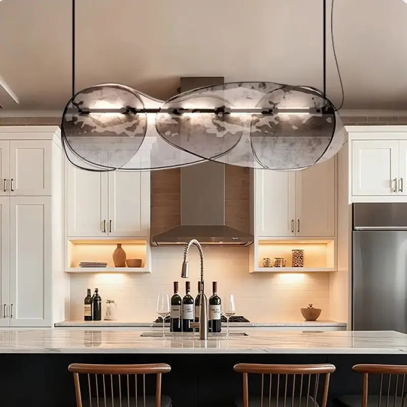 Beyond its decorative aspect, this light fixture plays an essential role in the room's ambiance. The glass diffuses the light, making it less harsh and creating a soothing and welcoming atmosphere.