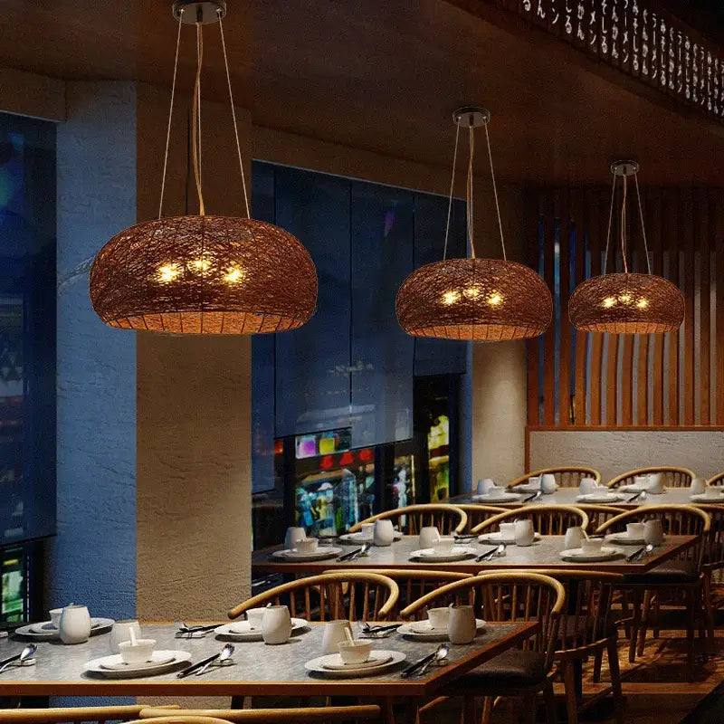 Oval-shaped, zen-style woven rattan pendant light, a handcrafted, soothing piece that diffuses a soft, natural light, perfect for creating a zen atmosphere.