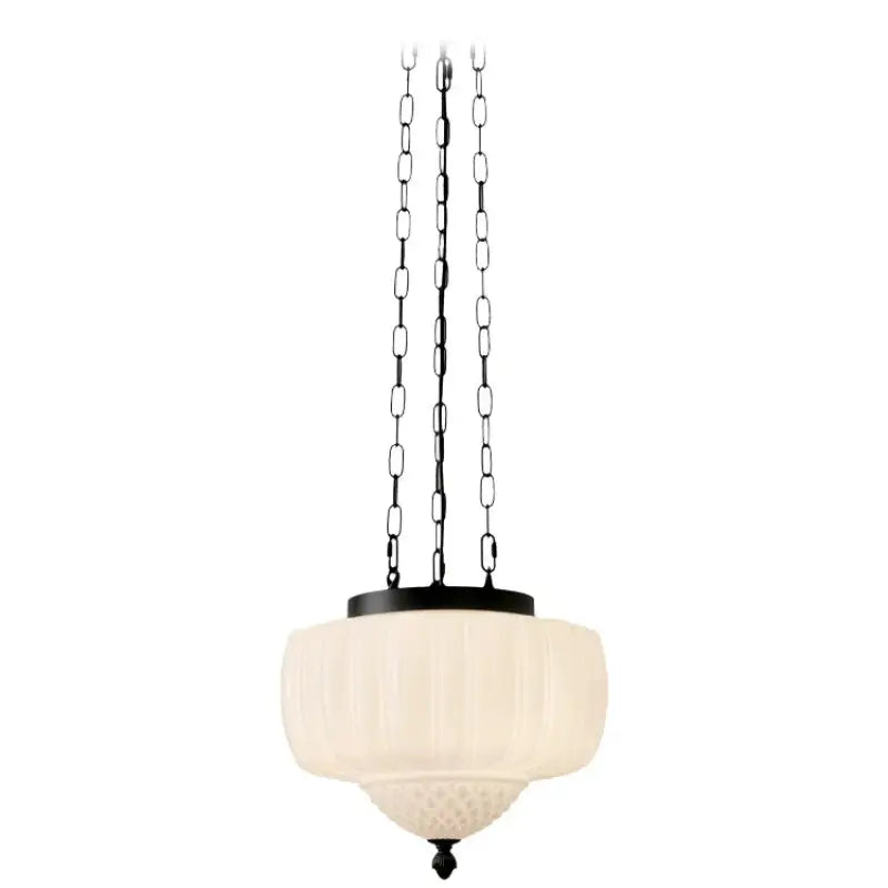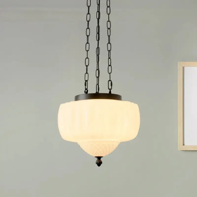 This elegant retro-style white glass pendant light brings soft light and vintage charm to enhance your interior with elegance and a uniquely warm design.