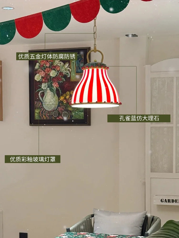 Suspension luminaire vintage en rouge motif rayé pour créer une ambiance élégante et chaleureuse et transformer votre intérieur avec un style unique.