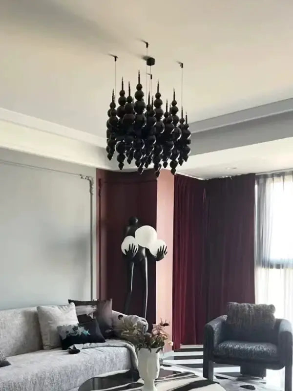Its deep black echoes high-end interiors, where design is both understated and sophisticated. Thanks to its delicately crafted balls, the luxurious modern design black ball chandelier pendant diffuses a soft, enveloping light, creating a cozy atmosphere conducive to relaxation or contemplation.