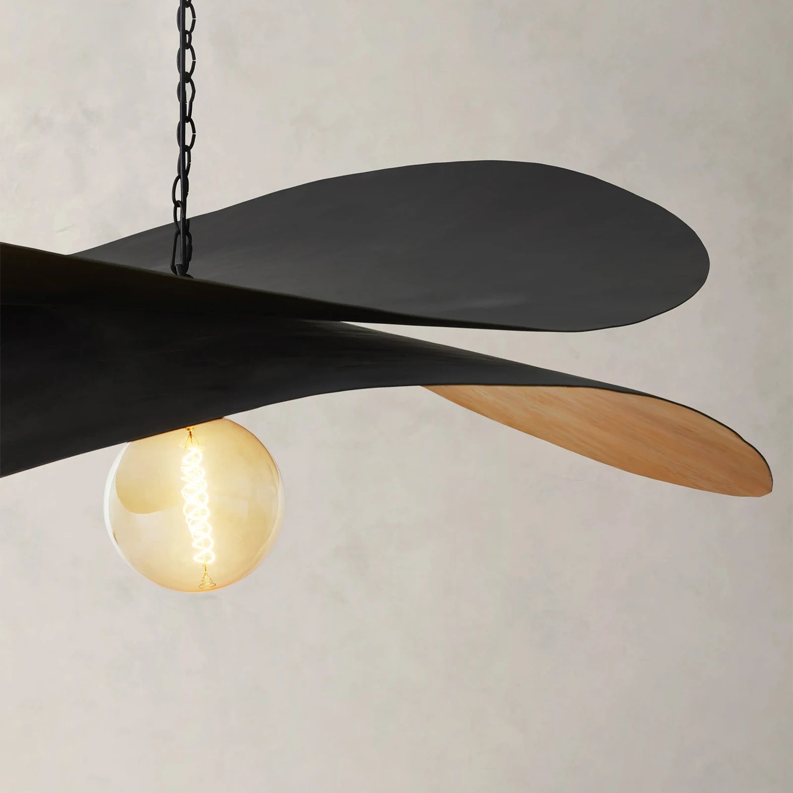 Suspension moderne design artistique noir et doré séduit par l’harmonie unique entre un noir intense et des touches dorées délicates. Cette combinaison chromatique n’est pas seulement élégante : elle joue avec les contrastes pour créer une ambiance à la fois chaleureuse et contemporaine. Le noir, symbole de modernité sobre, accentue la luminosité du doré, apportant une sensation de profondeur et de mouvement à la pièce.