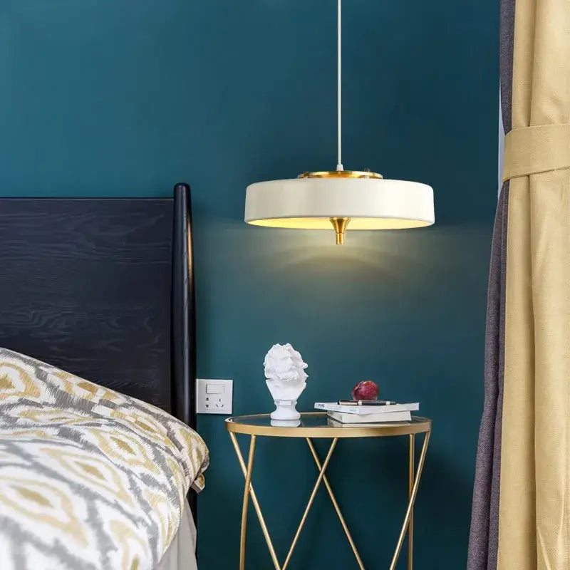 The designer flat pendant light with elegant gold details is much more than just a light fixture. It embodies a true decorative piece capable of transforming an ordinary room into a refined and warm space.