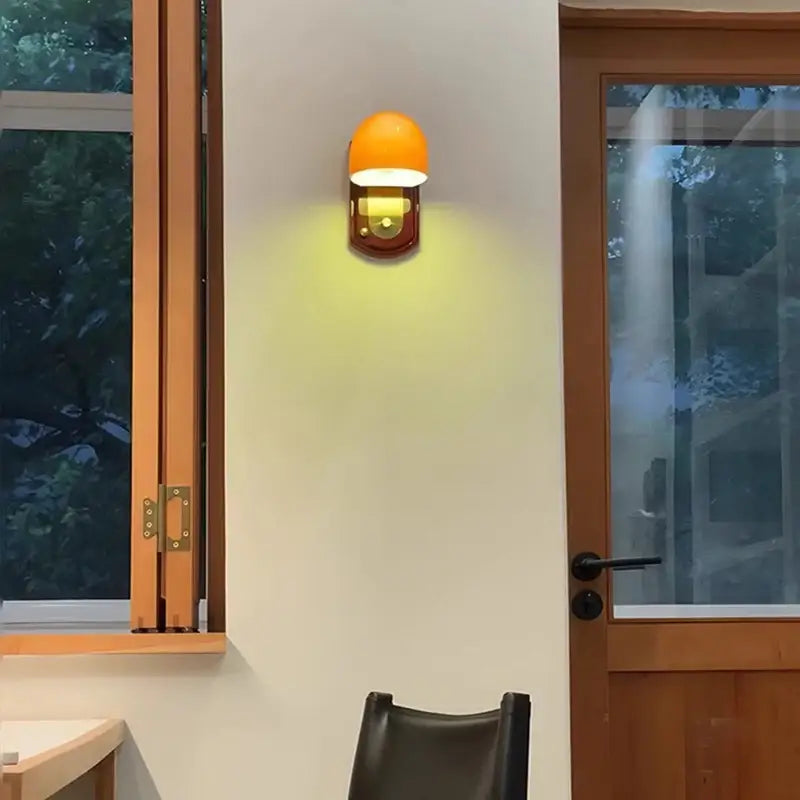Beyond its lighting function, the wall sconce with its brown wooden base and orange shade stands out as a truly decorative piece. It attracts attention and becomes a focal point in the room, adding a touch of originality and character to your interior decor.